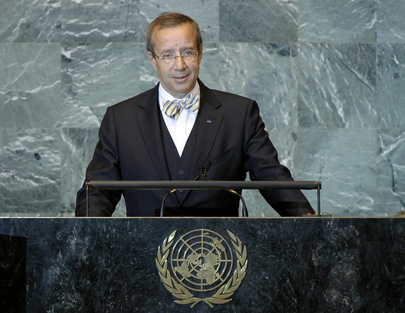 TOOMAS HENDRIK ILVES, President of Estonia, said his country’s transformation, after a half century of “thuggish” Soviet and Nazi occupation, into a modern technologically cutting-edge European democracy in just one generation was a testament to what committed people could do, as well as a challenge to those who found excuses for not implementing democracy, eliminating corruption and stopping the brutalization of their citizens. Hope of liberty and democracy were in the air in the Middle East: “again people have come together and said ‘Enough!’”. Enough of the lies, the corruption, the 3 a.m. knock on the door by the dull-brained goons of the secret police,” he said.